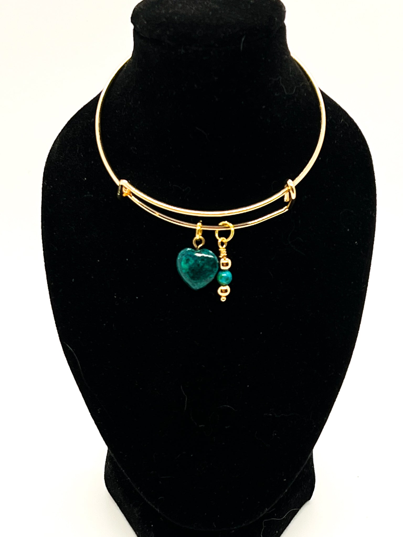 Regular price 8.99Sale price 8.99 Regular priceUnit price / perThis fun bangle would go well with our Green Riverstone Heart Necklace. This bangle expands to fit over most hands.