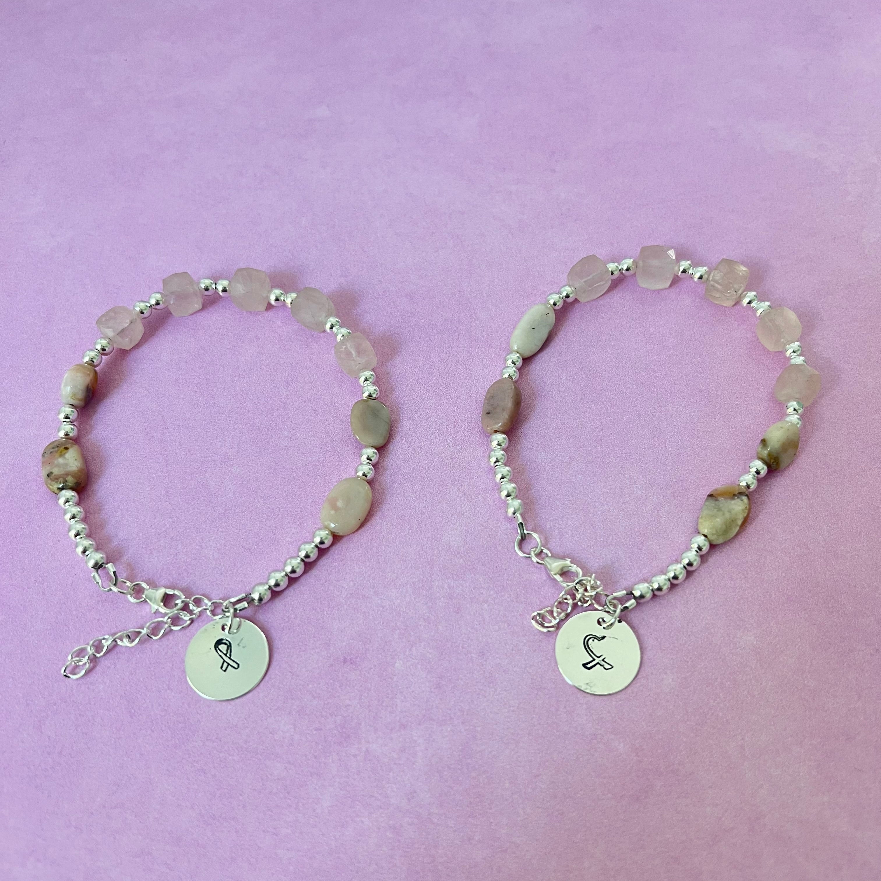 Regular price 33.00Sale price 33.00 Regular priceUnit price / perThis Subtle Pink bracelet, measuring 8"-9.5", features faceted rose quartz and pink opal beads with sterling silver accent beads. It also has a sterling silver clasp....
