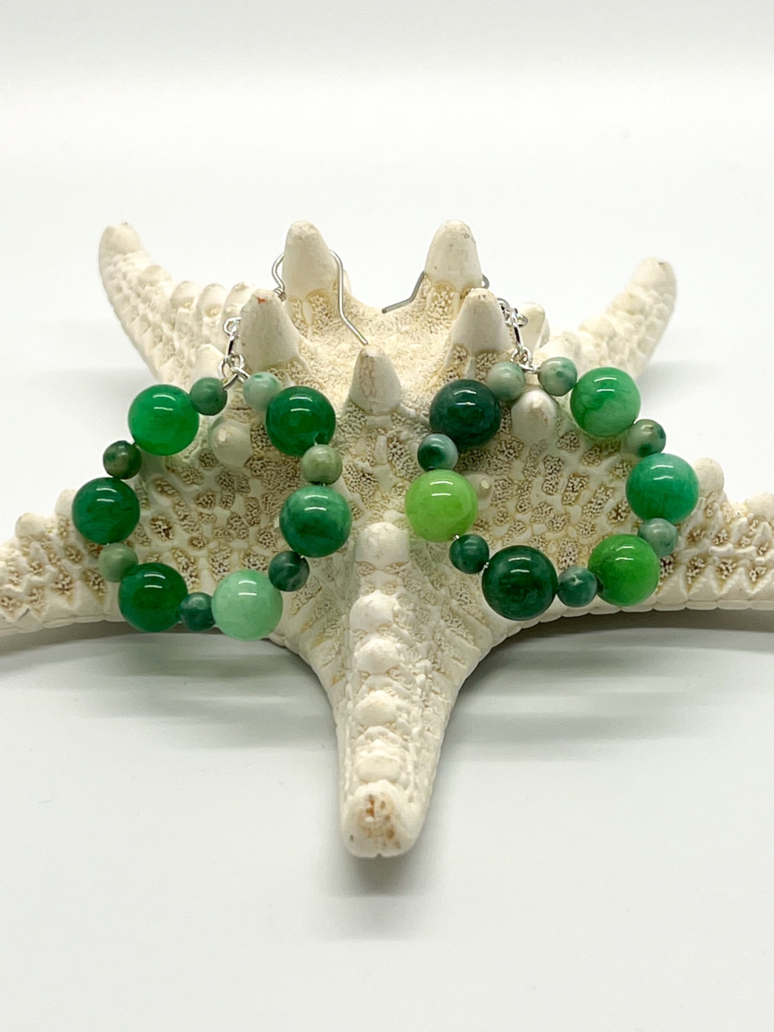 Regular price 15.99Sale price 15.99 Regular priceUnit price / perThese hoop earrings have Hai Jade and Green Quartz beads on a silver hoop. They are approx 1.25 in diameter. Note - Due to the variations...