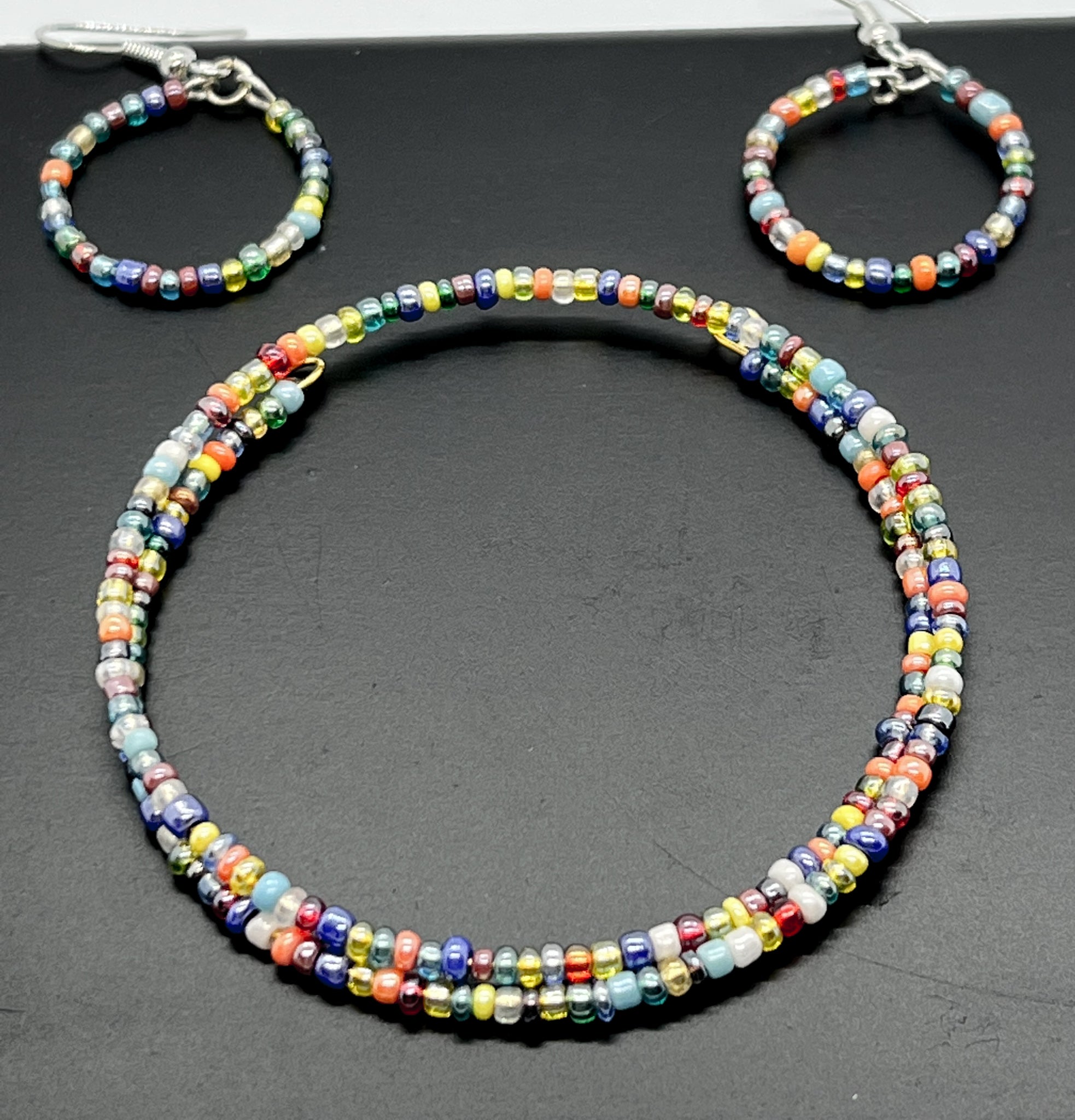 Multicolored Glass Seed Beads Bracelet + Earrings