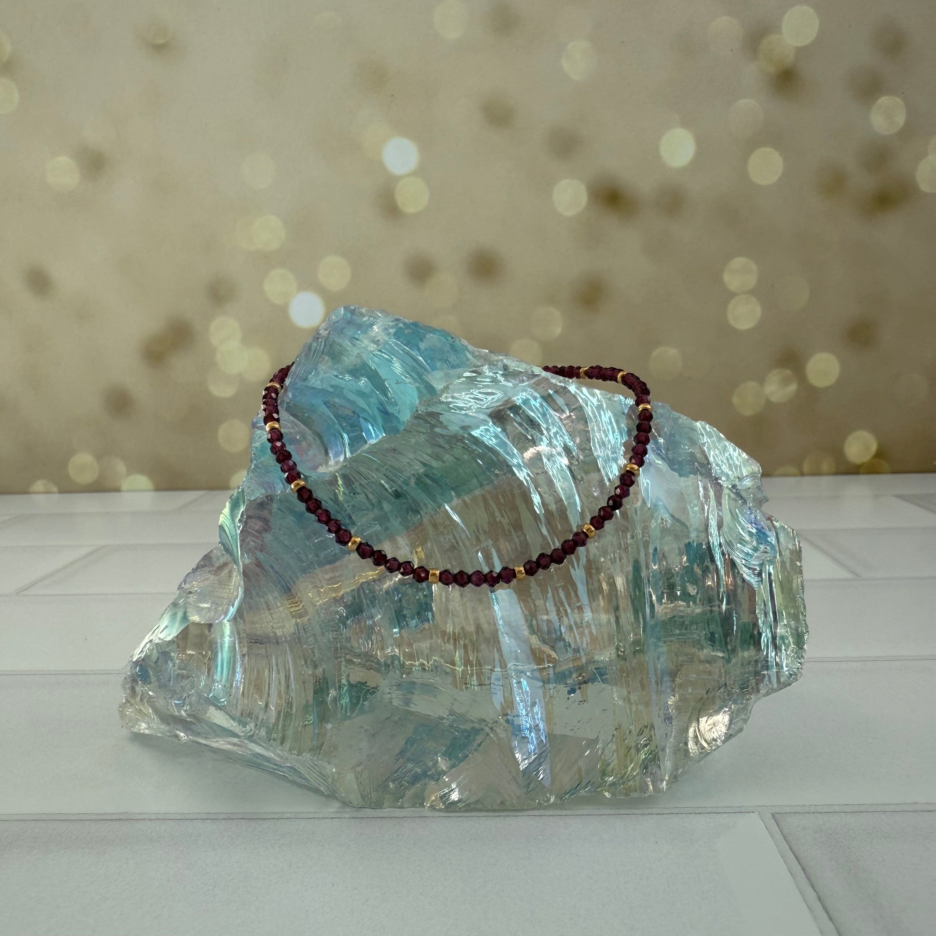 Regular price 71.00Sale price 71.00 Regular priceUnit price / perCrafted with faceted garnet beads and accented with gold, the Regal Garnet Bracelet adds a touch of elegance to any ensemble. Complete with a gold filled...