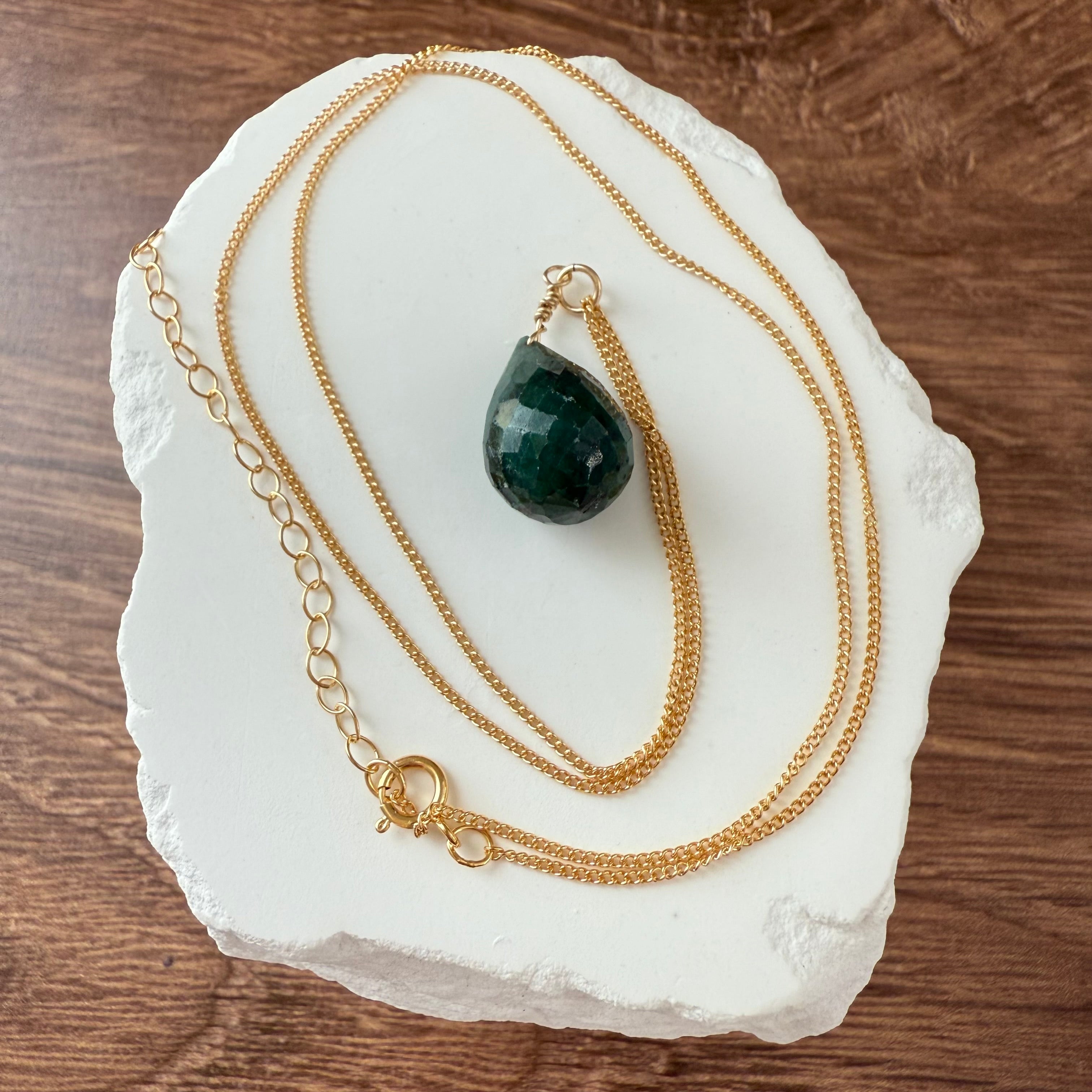 Regular price 59.00Sale price 59.00 Regular priceUnit price / perThis elegant Emerald Drop necklace features a 17x10mm faceted teardrop emerald pendant on an 18" gold filled chain with a secure clasp. Perfect for adding a...