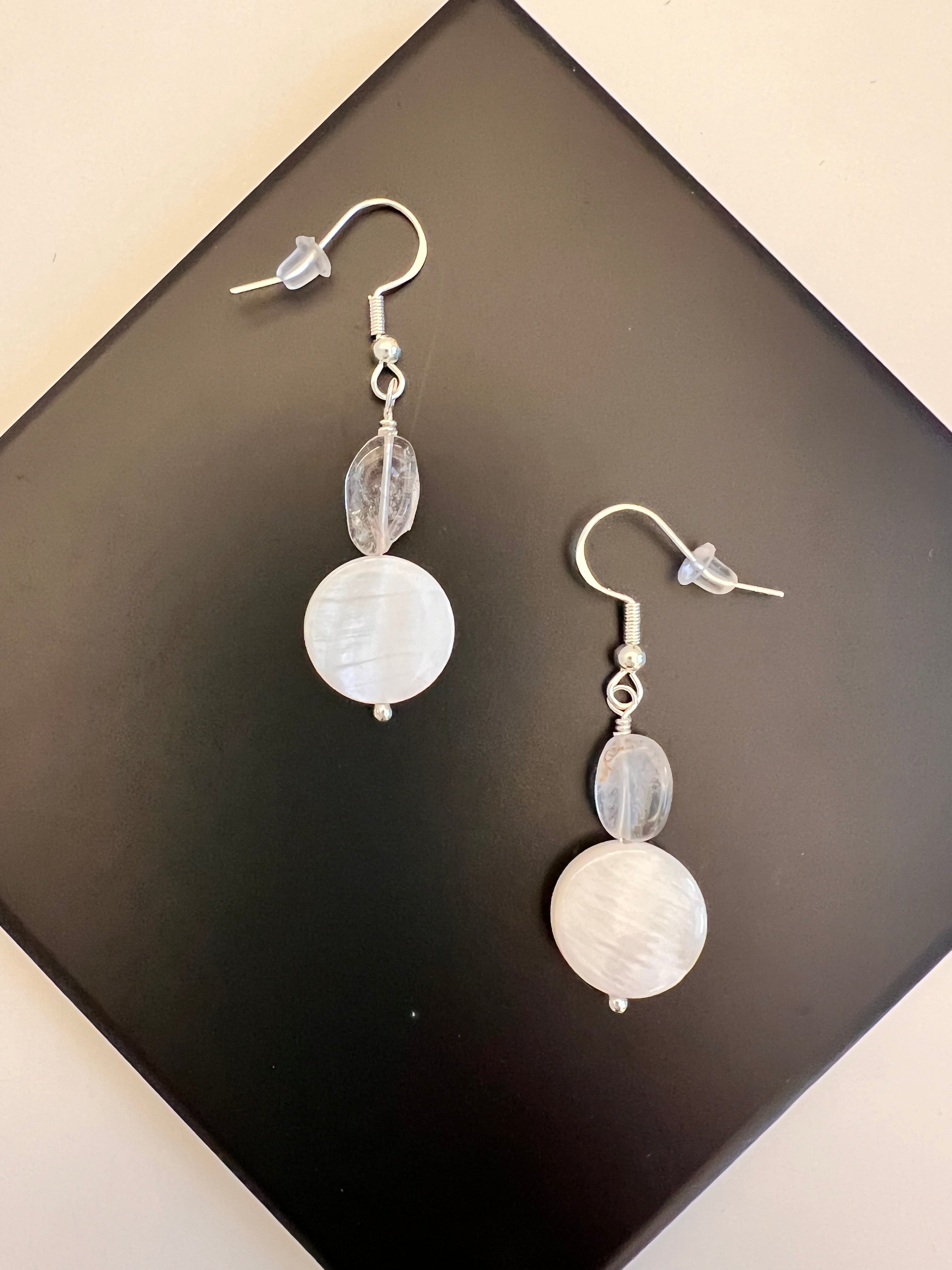 Regular price 14.99Sale price 14.99 Regular priceUnit price / perThese earring pair nicely with our Mother of the Pearls necklace. Made with shell discs and quarts beads, you will feel refreshed wearing these beach inspired...
