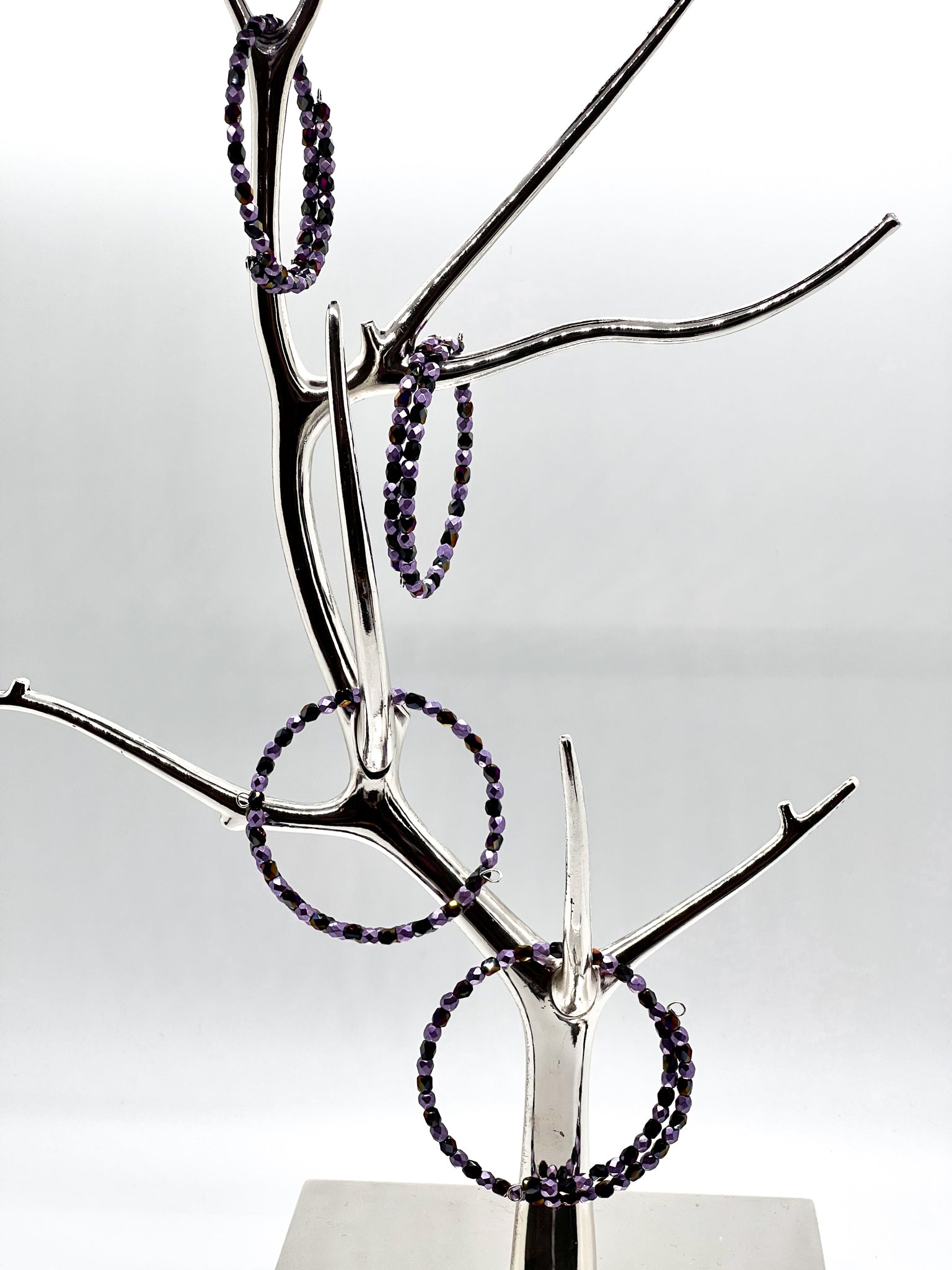 Metallic Crocus & Jet Golden Purple Czech Glass Wrap Bracelet