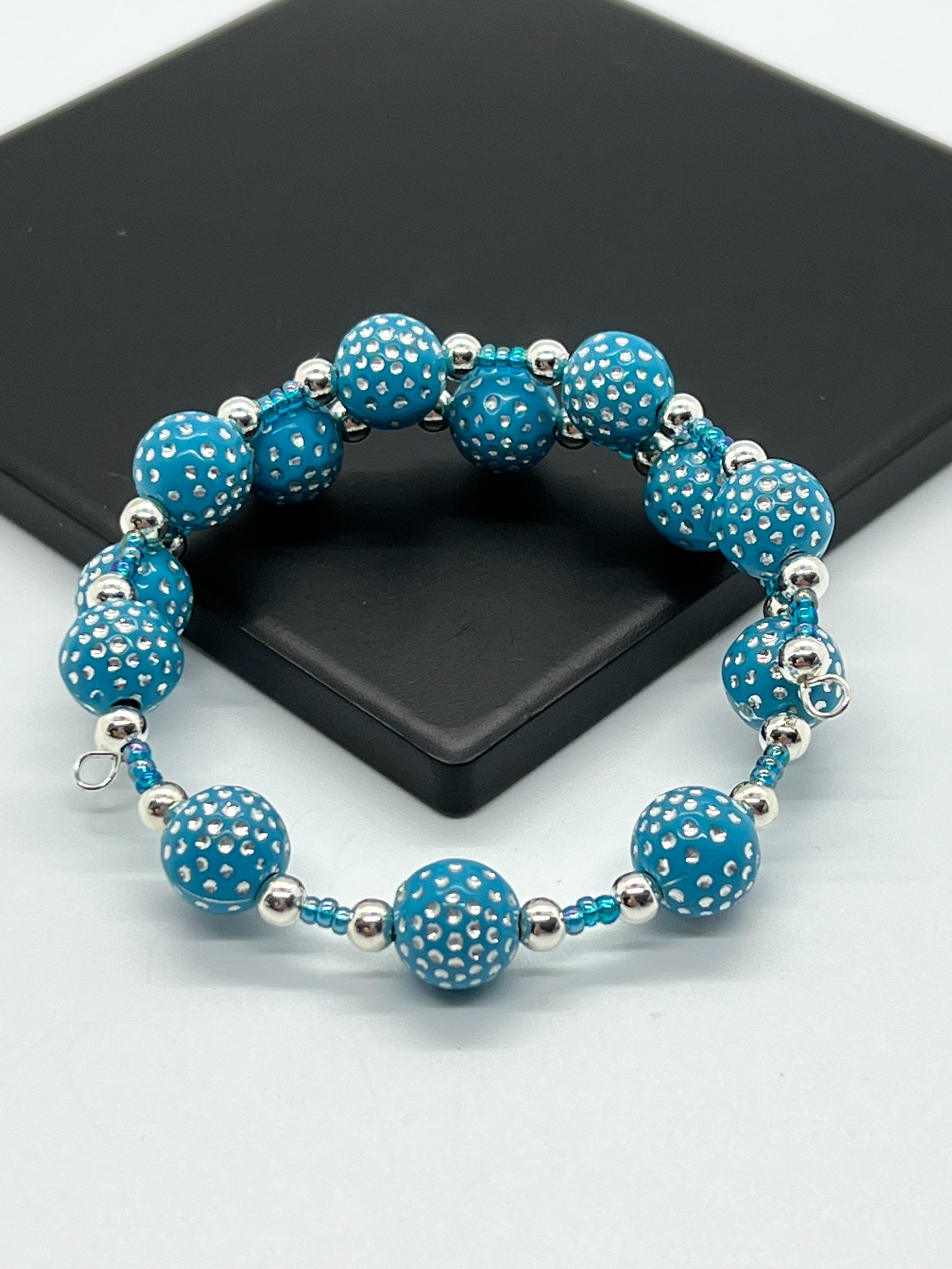 Regular price 12.99Sale price 12.99 Regular priceUnit price / perThis wrap bracelet uses has silver and glass beads paired with the teal and silver acrylic beads used in several of our Spring Break Collection pieces....