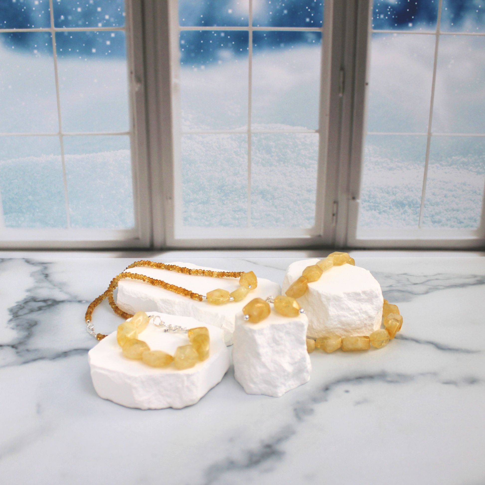 Add a sunny sparkle to your day with these Citrine Nugget Earrings! Featuring medium nugget citrine stones that catch the light with every move, they hang playfully from sterling silver ear wires with a delicate box chain. At 2.75" long, they’re the perfect pop of cheerful charm to brighten any outfit.
